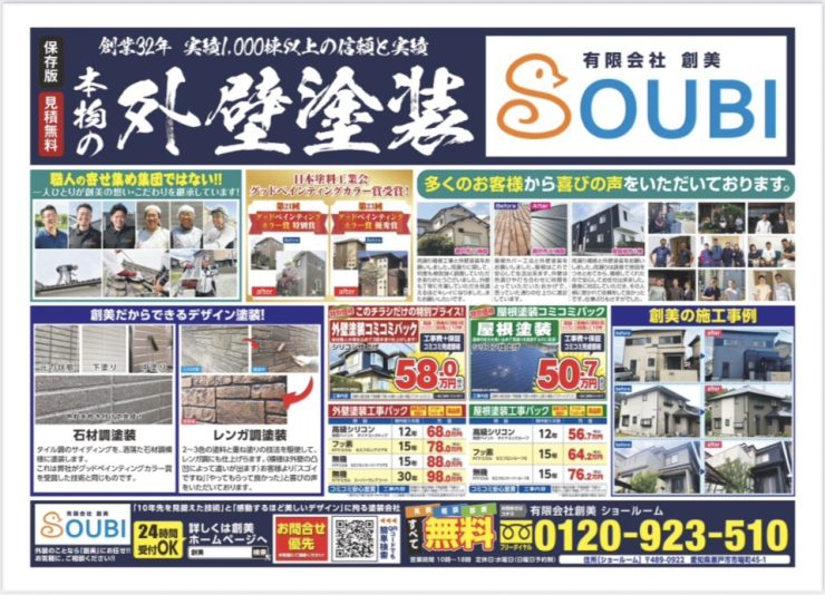 瀬戸市 尾張旭市 長久手市 守山区周辺で外壁・室内塗装、屋根工事をお考えの方は創美にご相談ください。