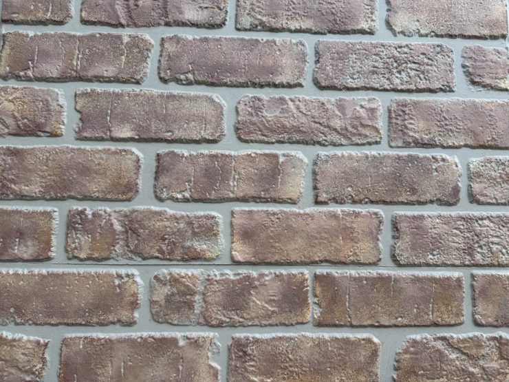 こちらのお宅もレンガ調のデザイン塗装で、手前の門柱に合わせて塗装しました。