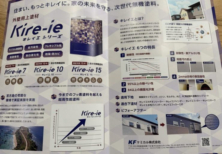創美では、シリコンはエスケーか関西ペイント、フッ素はKFケミカル、無機は関西ペイントかKFケミカルでご提案しています。