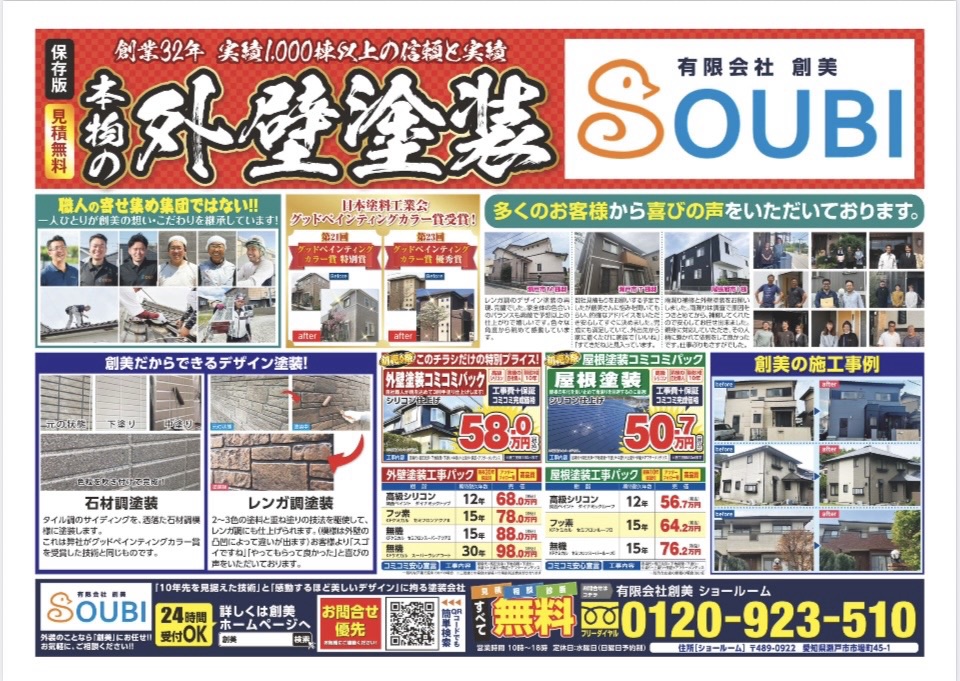 瀬戸市 尾張旭市 長久手市 守山区周辺で、外壁塗装、屋根工事を考えている方は、創美にご相談ください